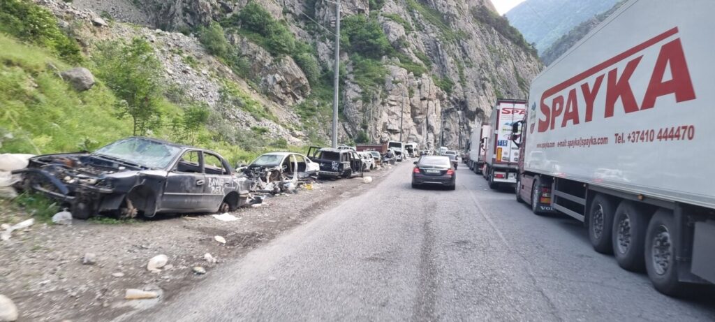 Now I’m riding Russia at least 5kms of trucks waiting to cross into Georgia, God I feel for them. Rocky mountains and that same raging river but its all downhill and increased temperature all the way it Chechnya.